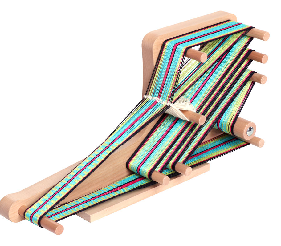 Compact and portable inkle loom perfect for creating narrow bands, straps, and belts. Ideal for beginners learning band weaving.
